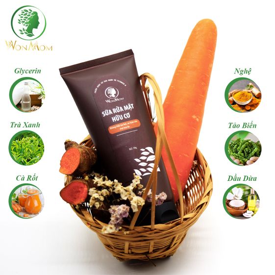 Sữa rửa mặt hữu cơ Wonmom với nguyên liệu tự nhiên, an toàn cho sức khỏe, được chiết xuất từ trà xanh, tinh dầu trà xanh, tinh dầu carot, glycerin, dầu dừa, tảo, nghệ, Coco Glucoside và một số thảo dược khác… Giúp trị gàu, kích thích mọc tóc, nuôi tóc dài, suôn mượt.