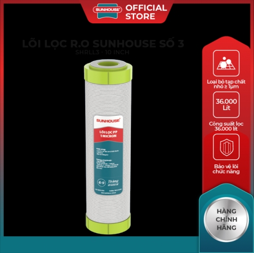 Lõi lọc nước số 3 SUNHOUSE SHRLL3 có chức năng loại bỏ bùn đất, rỉ sét, các loại tạp chất thô, kim loại nặng …có kích thước ≥ 1µm.
