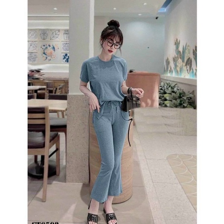 Tên sản phẩm: Set bộ đồ nữ áo thun cổ tròn tay ngắn kèm quần dài M849