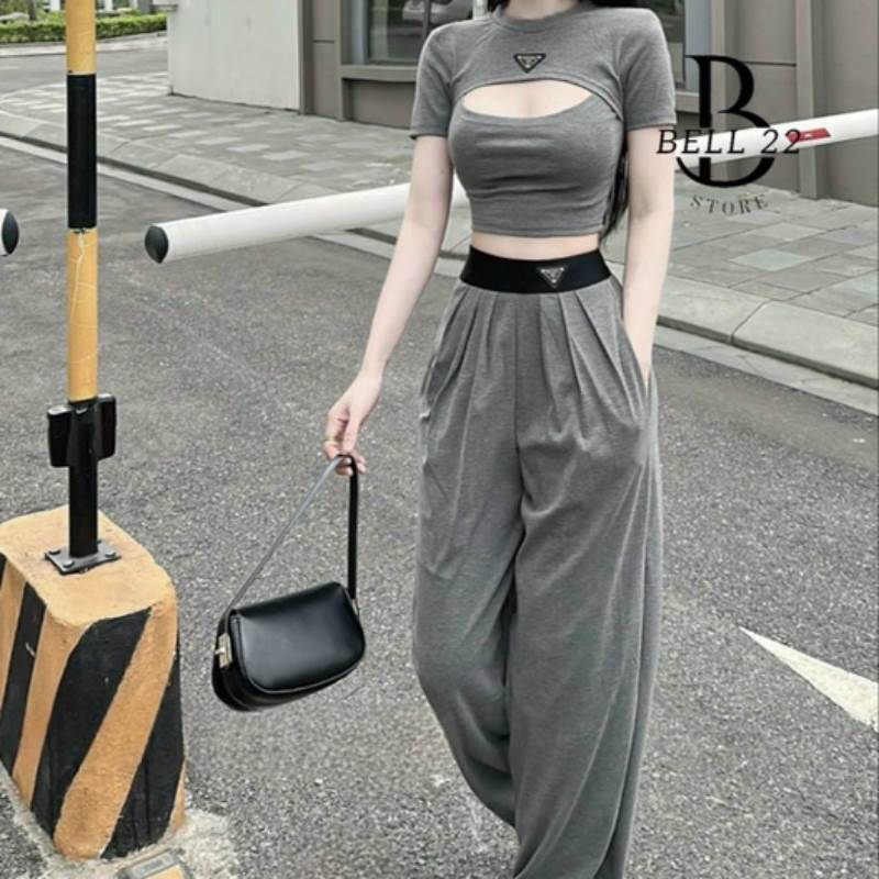 Tên sản phẩm: SET BỘ THUN DÀI ÁO CROPTOP PHỐI HỞ NGỰC B678