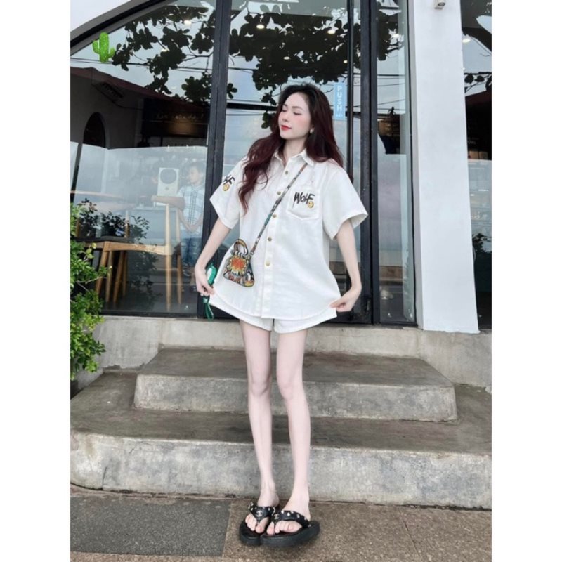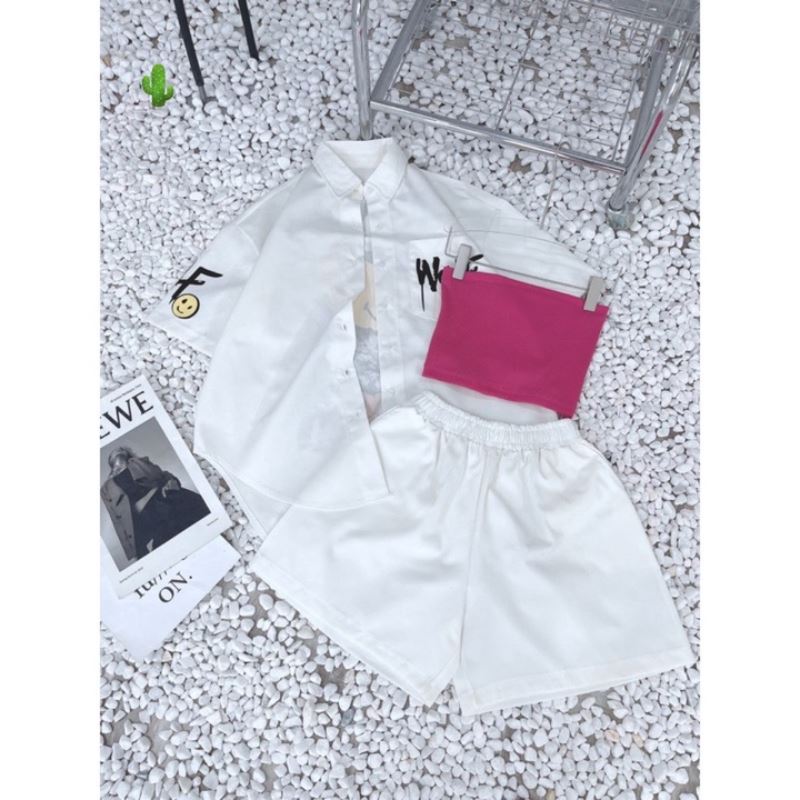 SET ĐỒ NỮ 3 MÓN ÁO SƠ MI QUẦN SHORT ÁO THUN NỮ VẢI KATE