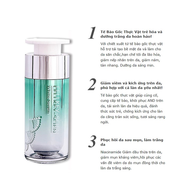 Tên sản phẩm: Tinh Chất Dưỡng Trắng Da Tế Bào Gốc Cấp Ẩm Se Khít Lỗ Chân Lông Và Chống Lão Hoá White Serum 30ml – Cellkey-Scien
